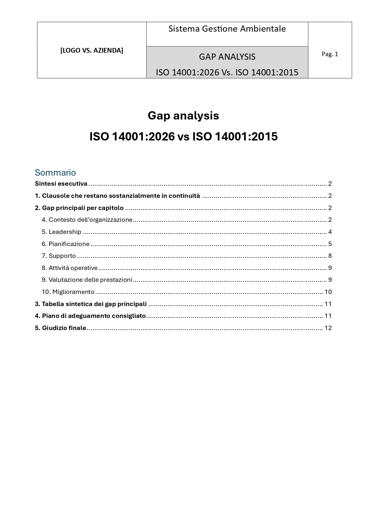 Kit Documentale Gap Analysis ISO 14001:2026 vs 2015