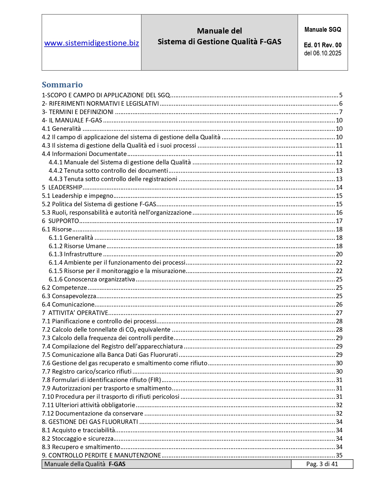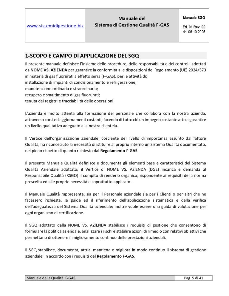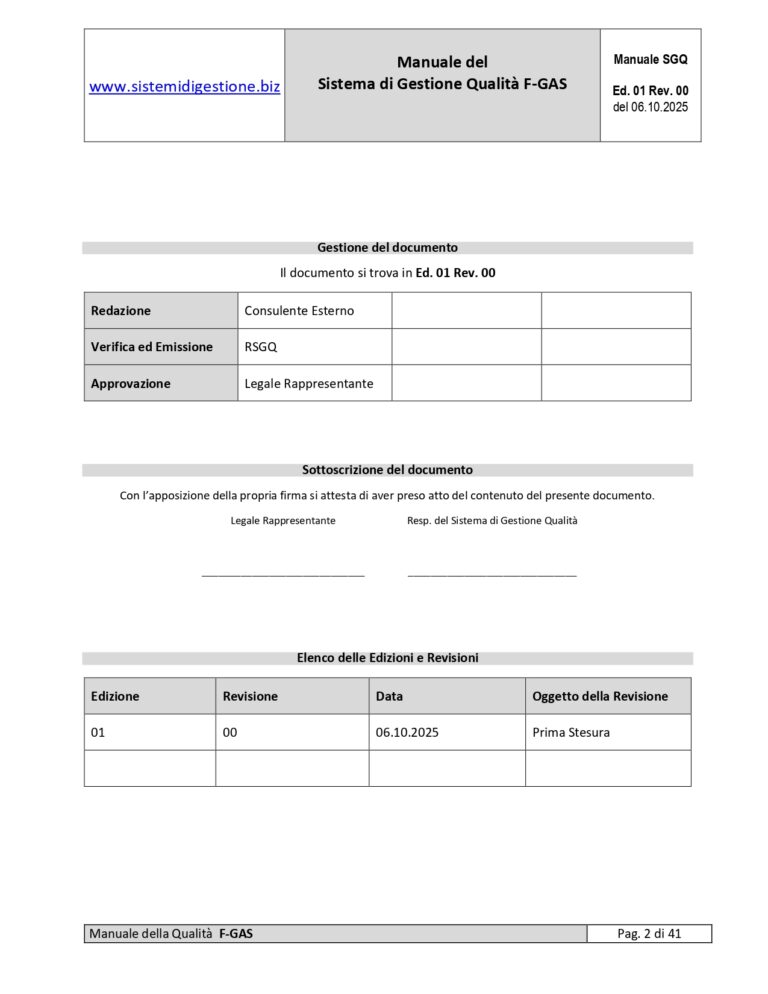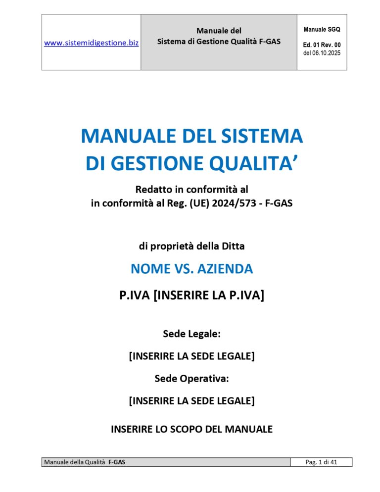 | / | / | MANUALE | / | MANUALE SISTEMA DI GESTIONE DELLA QUALITA’ F-GAS Reg. (UE) 2024/573 |
