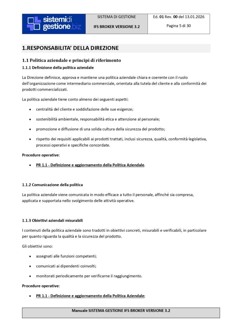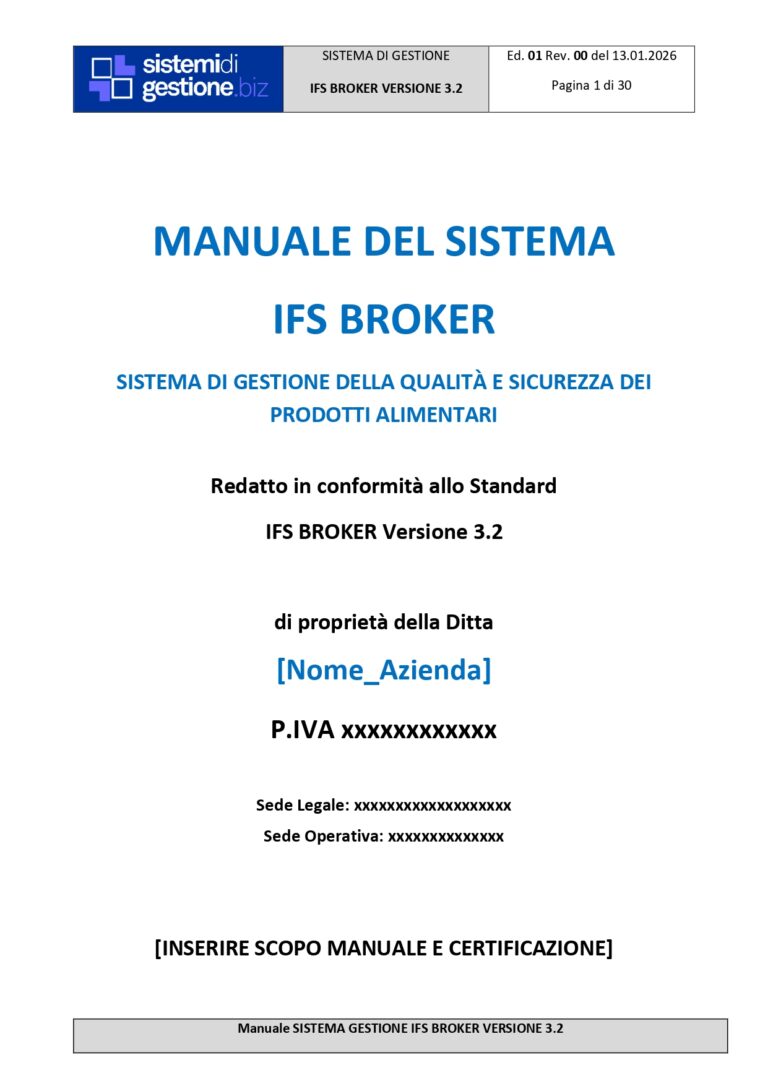 Questo kit ti consente di implementare in modo rapido e strutturato un Sistema di Gestione conforme allo standard IFS Broker v.3.2, senza dover creare documenti da zero.