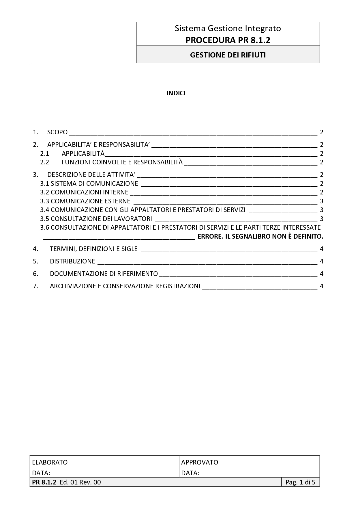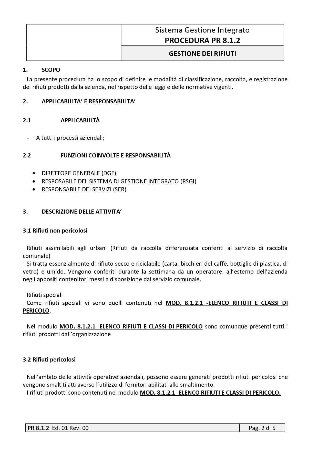 | 11 | PROCEDURA | 8.1.2 | GESTIONE DEI RIFIUTI | |