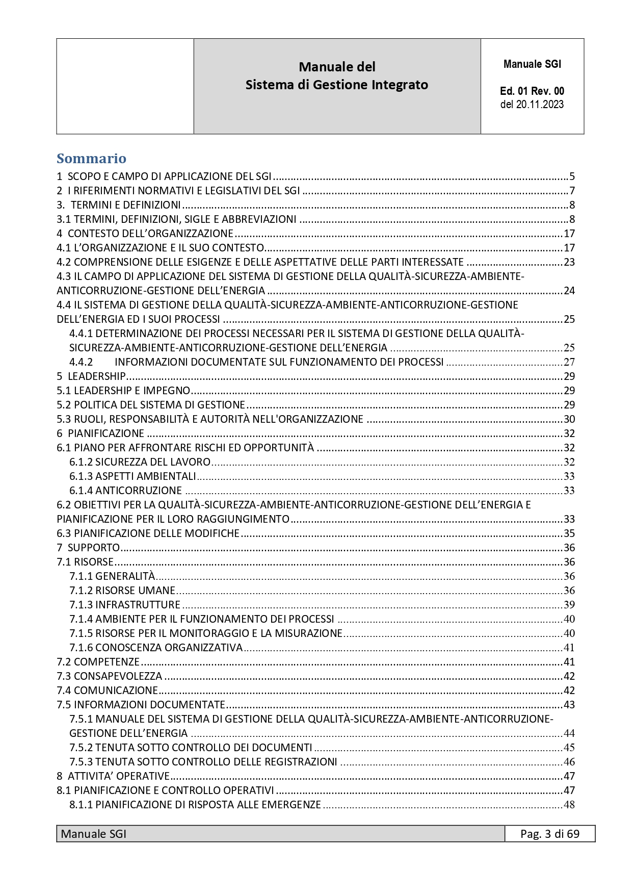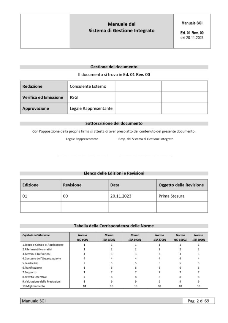 | MANUALE SISTEMA DI GESTIONE INTEGRATO ISO 9001 – ISO 14001 – ISO 45001 – ISO 37001 – ISO 39001 – ISO 50001 | ||||