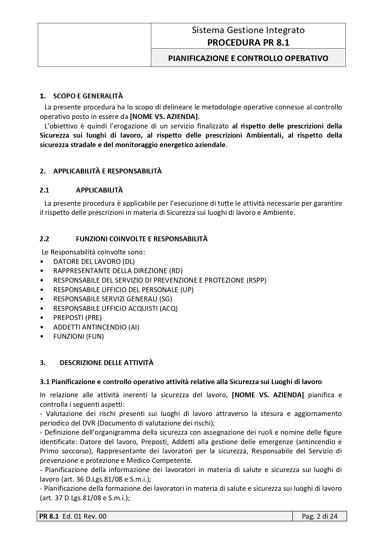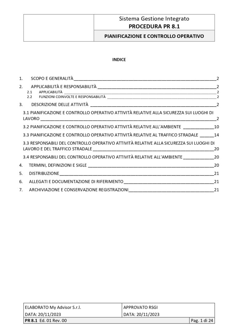 | 19 | PROCEDURA | 8.1 | PIANIFICAZIONE CONTROLLO OPERATIVO | |