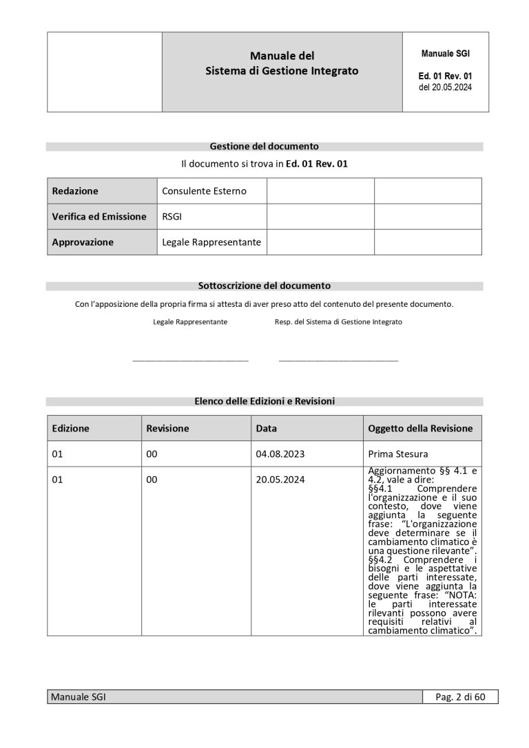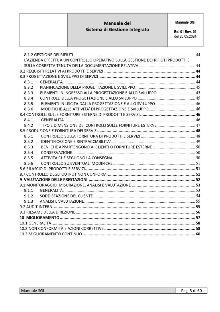 - n° 1 MANUALE del Sistema di Gestione