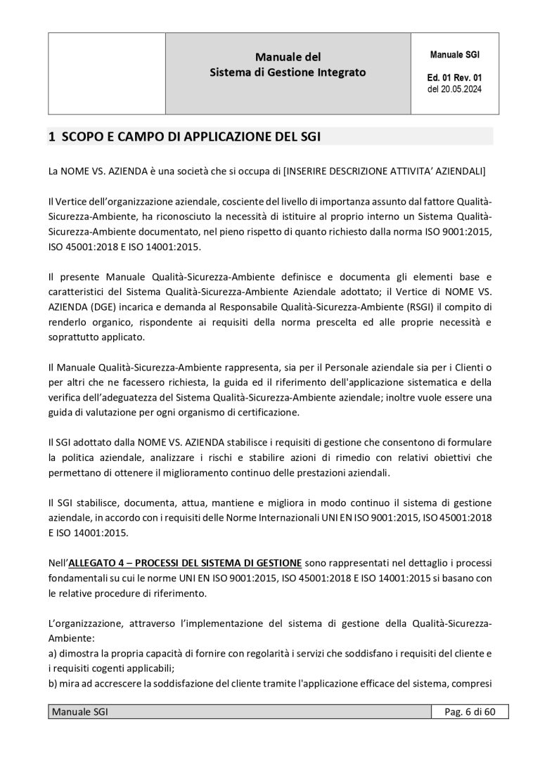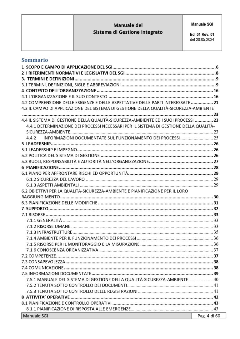 | MANUALE SISTEMA DI GESTIONE INTEGRATO ISO 9001-ISO 45001- ISO 14001 | ||||