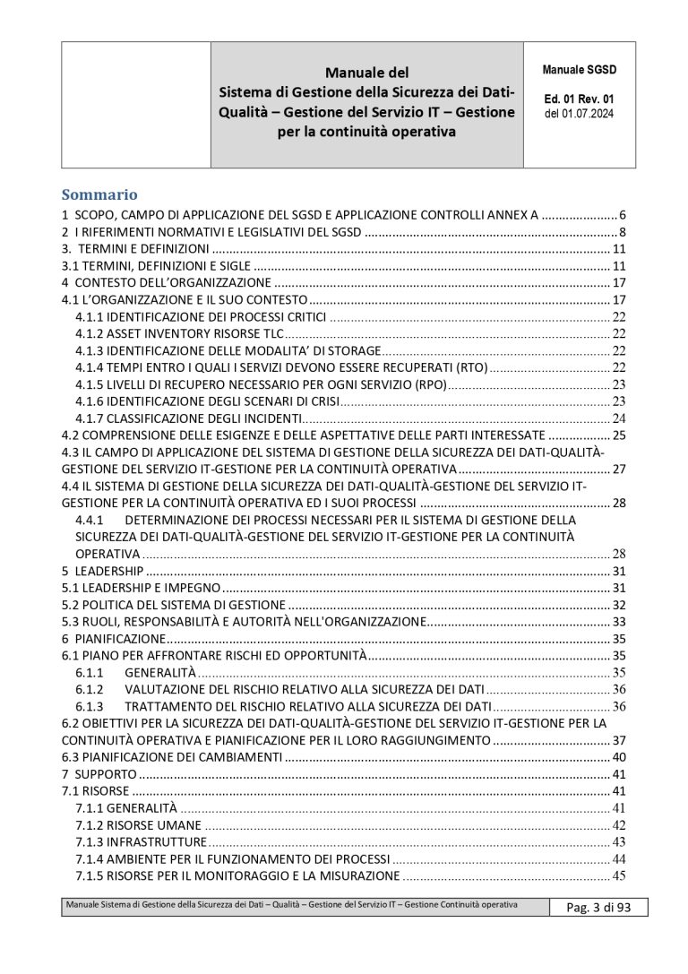 | Manuale SGI ISO 9001, ISO/IEC 27001, ISO/IEC 20000-1, ISO 22301 | ||||