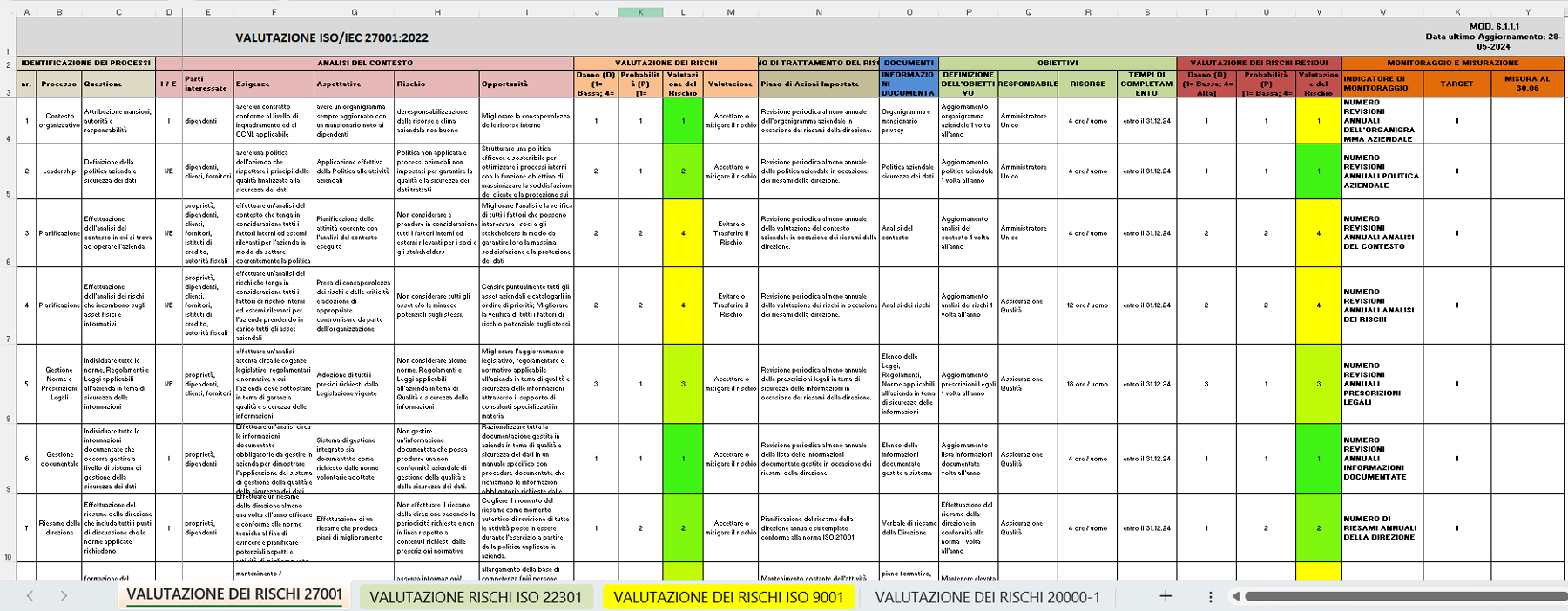 | 2 | MODULO | 6.1.1.1 | VALUTAZIONE DEI RISCHI SISTEMA DI GESTIONE ISO/IEC 27001, ISO 9001, ISO/IEC 20000-1 E ISO 22301 | |