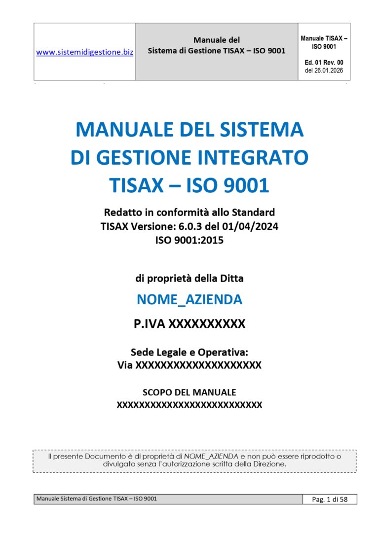 | / | / | MANUALE | / | MANUALE TISAX VERSIONE 6.0.3 – ISO 9001:2015 |