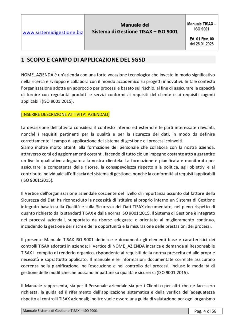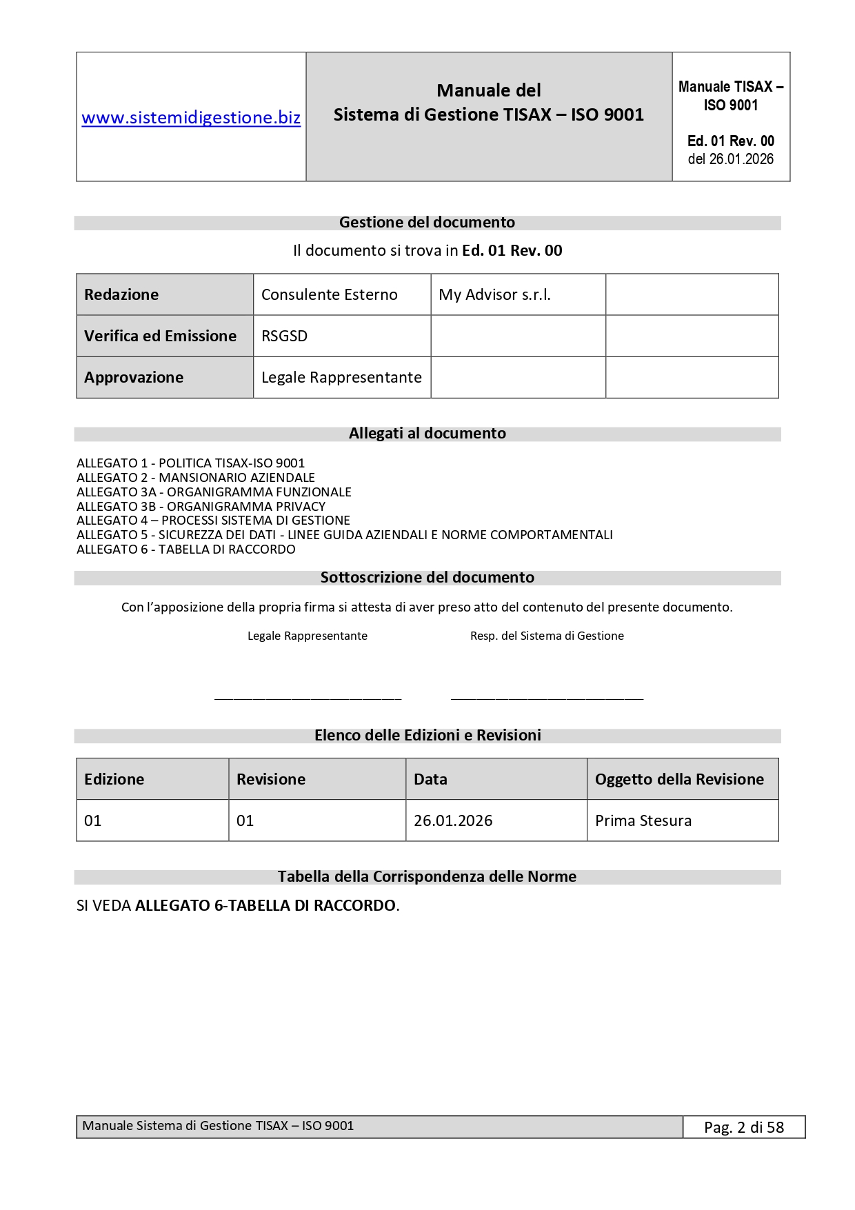 | MANUALE SISTEMA DI GESTIONE INTEGRATO TISAX – ISO 9001 | ||||