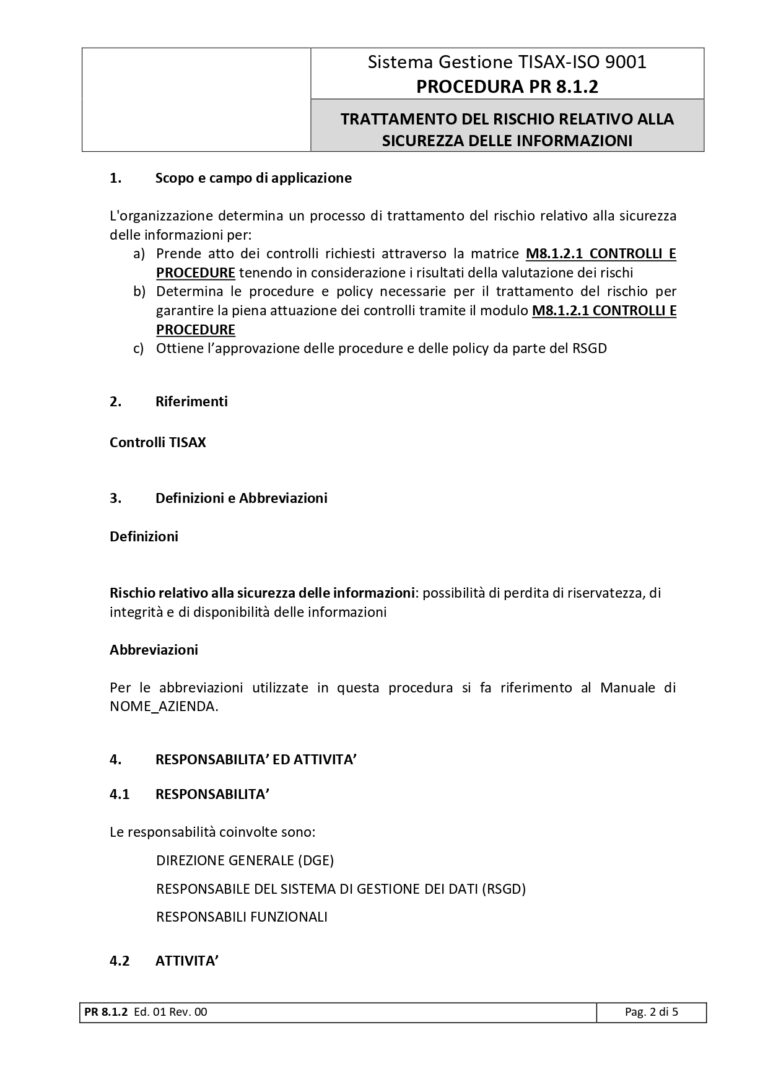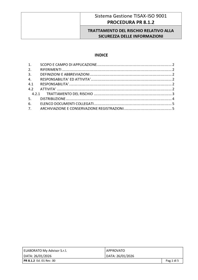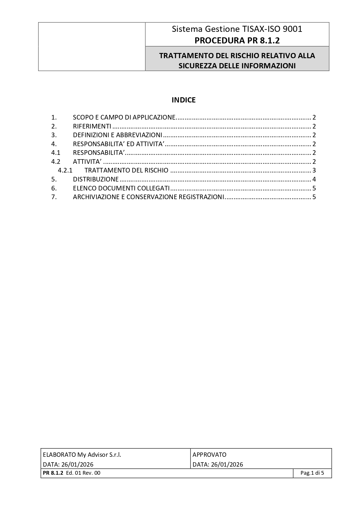 | 9 | PROCEDURA | 8.1.2 | TRATTAMENTO DEL RISCHIO RESIDUO | |
