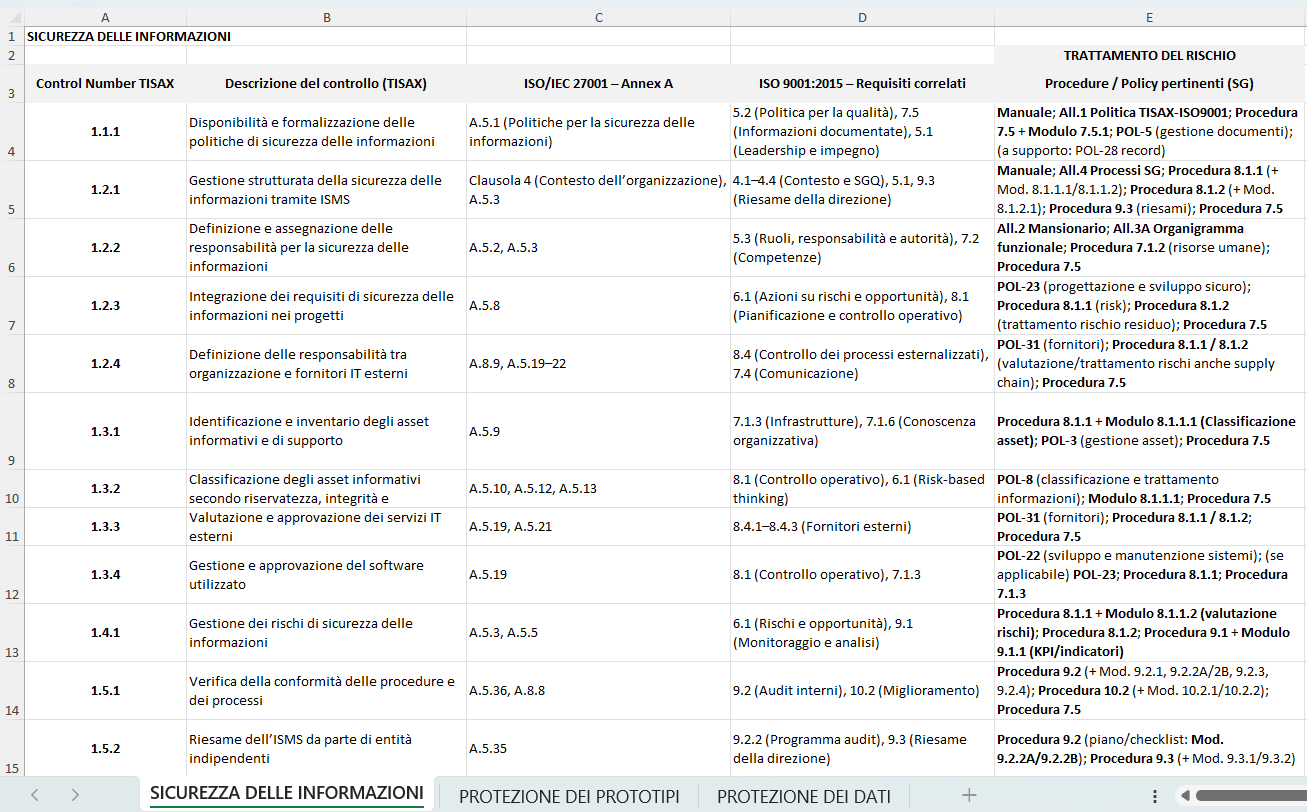 | PROCEDURE E MODULI DI REGISTRAZIONE EVIDENZE TISAX – ISO 9001 | ||||