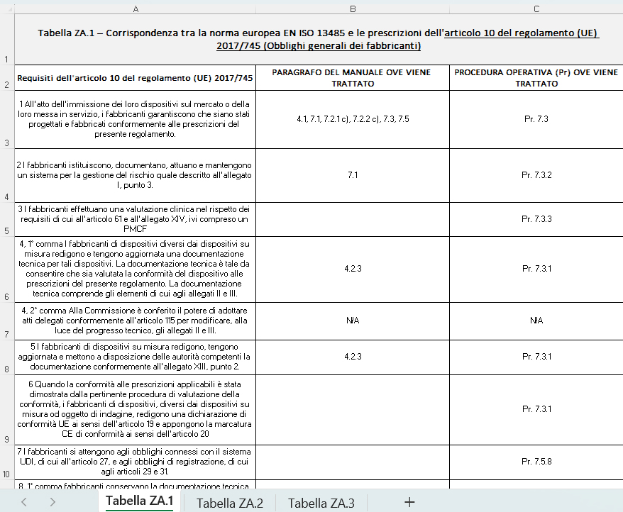 | 2 | PROCEDURA | 2.1.1 | GESTIONE CORRISPONDENZA ISO 13485 – REG 745 | |