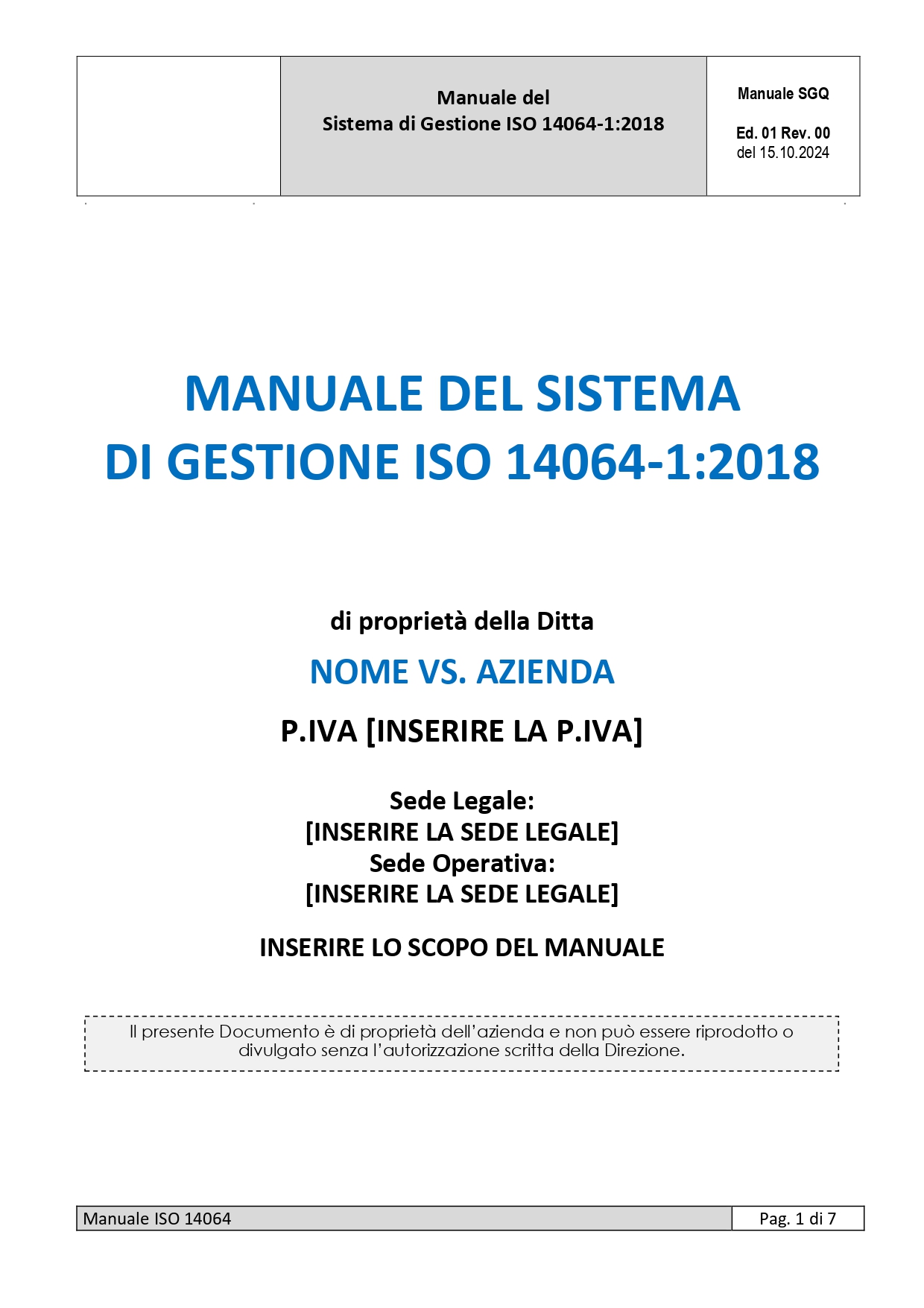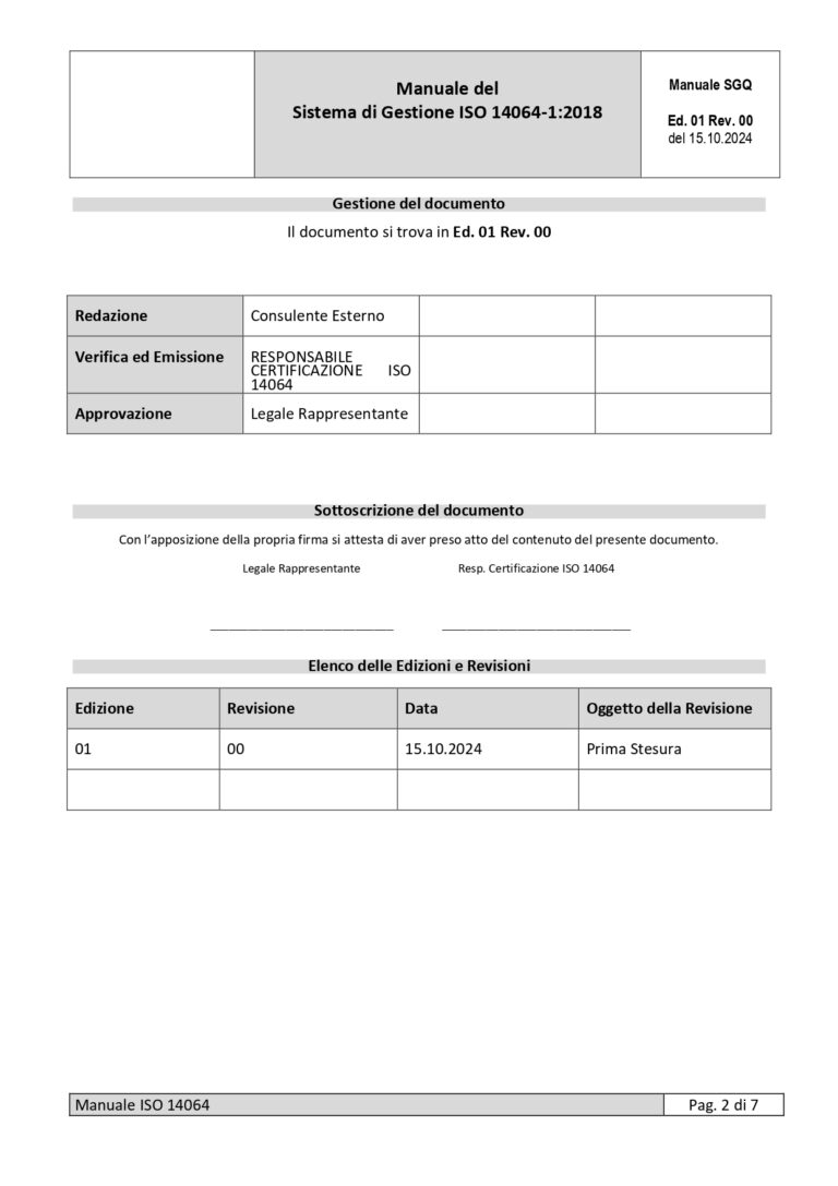 | Manuale sistema di gestione ISO 14064-1 | ||||