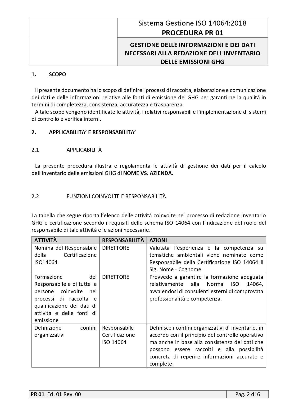 | 2 | MODULO | 01-02 | RAPPORTO INVENTARIO DELLE EMISSIONI GHG | |