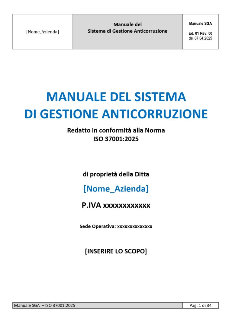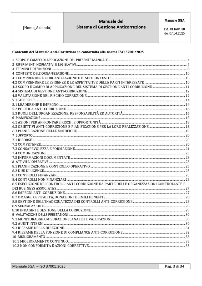 Il Kit Documentale Sistema di Gestione ISO 37001 è CONFORME alla norma ISO 37001:2025 ed è sviluppato in LINGUA ITALIANA.