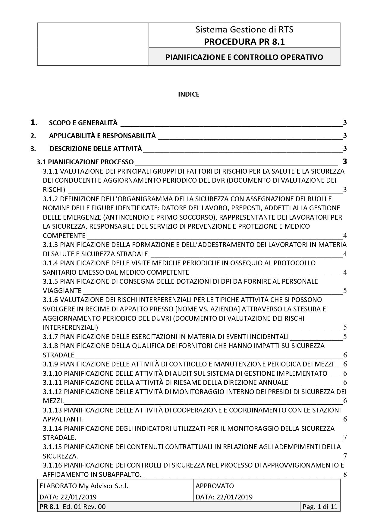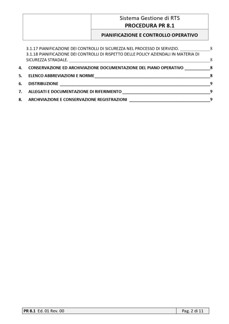 | 6 | PROCEDURA | 8.1 | PIANIFICAZIONE E CONTROLLO OPERATIVO | |
