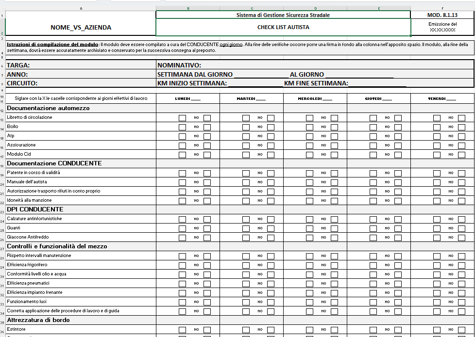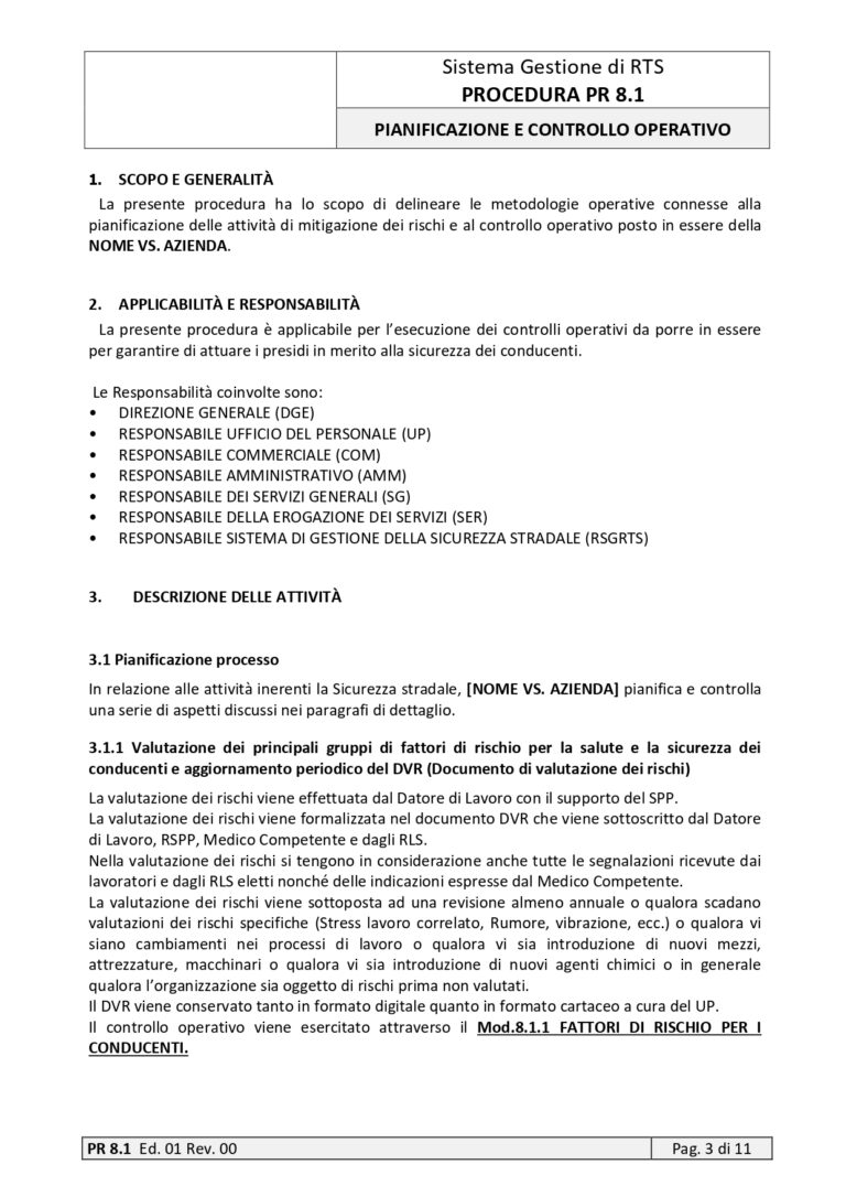 | Procedure e Moduli di Registrazione Evidenze della Sicurezza Stradale | ||||