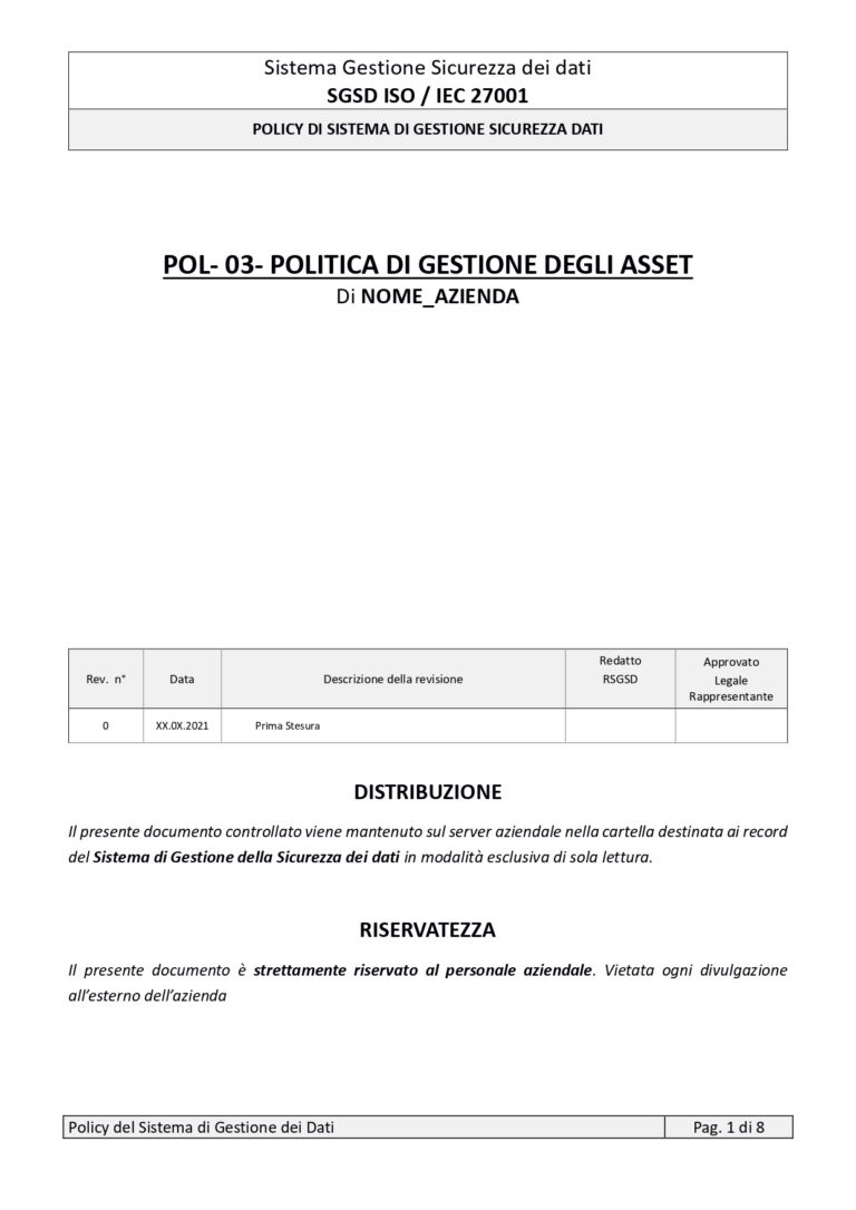 | 3 | POLICY SICUREZZA DATI | POL-3 | POLITICA GESTIONE ASSET |