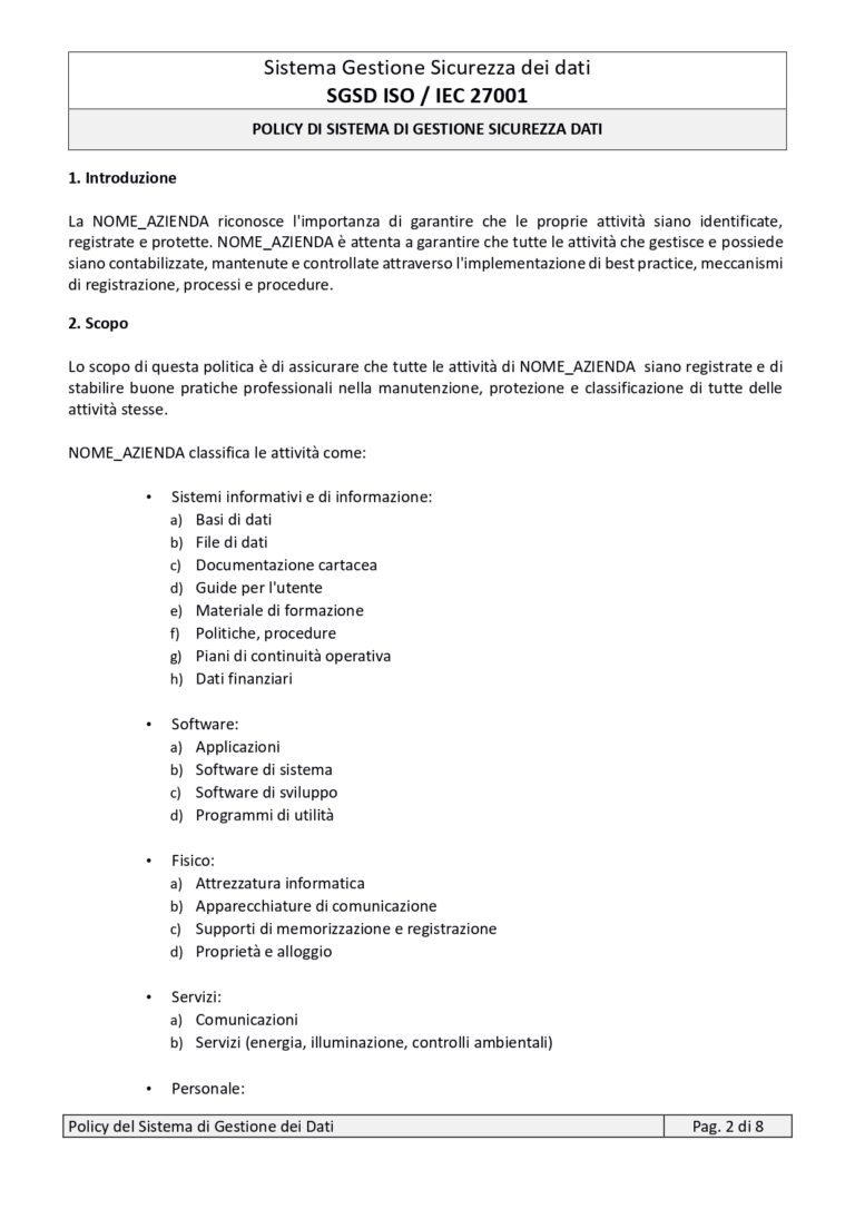 Di seguito puoi visualizzare alcuni stralci documentali dei contenuti del kit. Tutti i file sono forniti in formato Word ed Excel e possono essere personalizzati in base alle esigenze dell’azienda o del consulente.