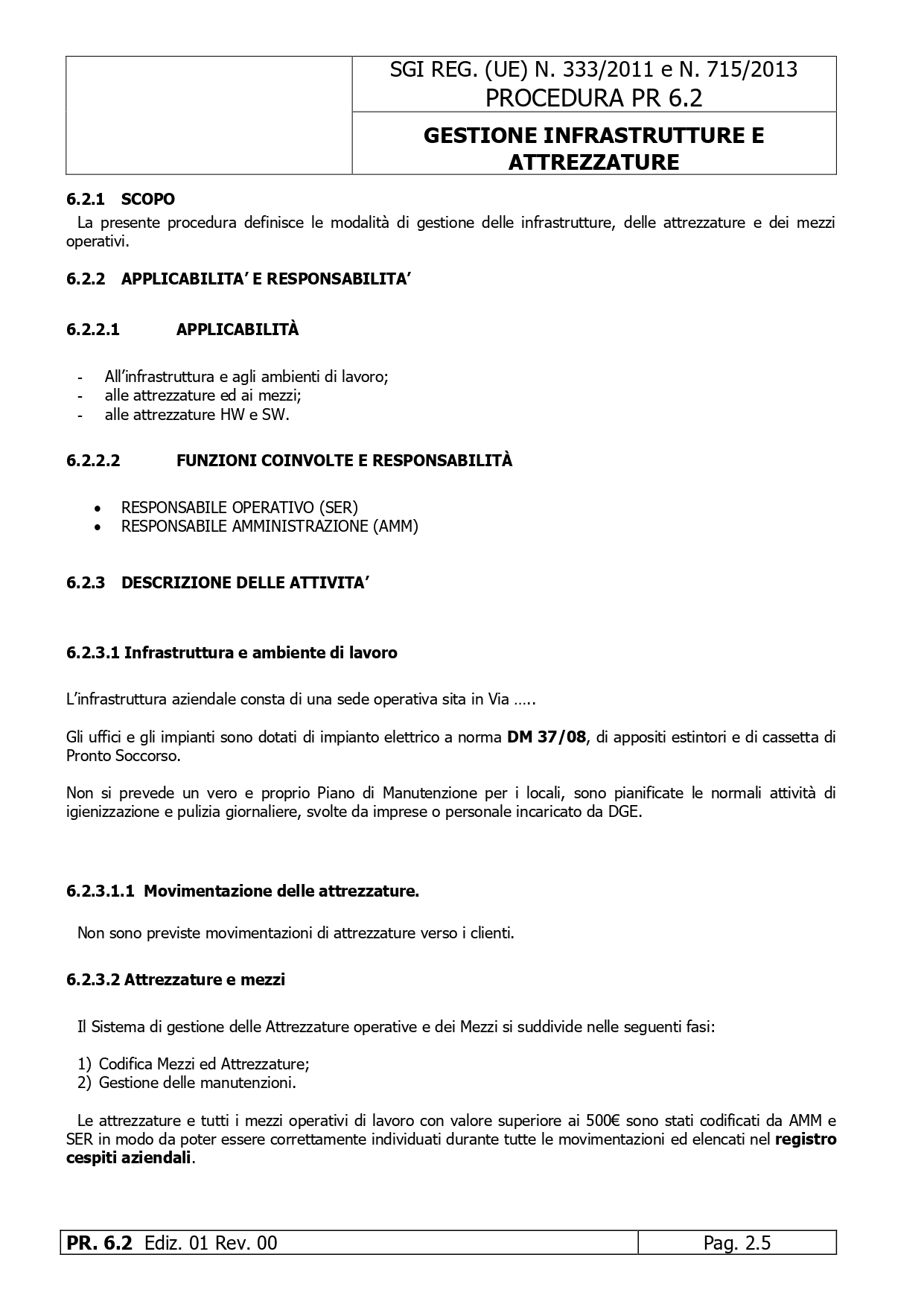 PR 6.2 Gestione di infrastrutture e attrezzature