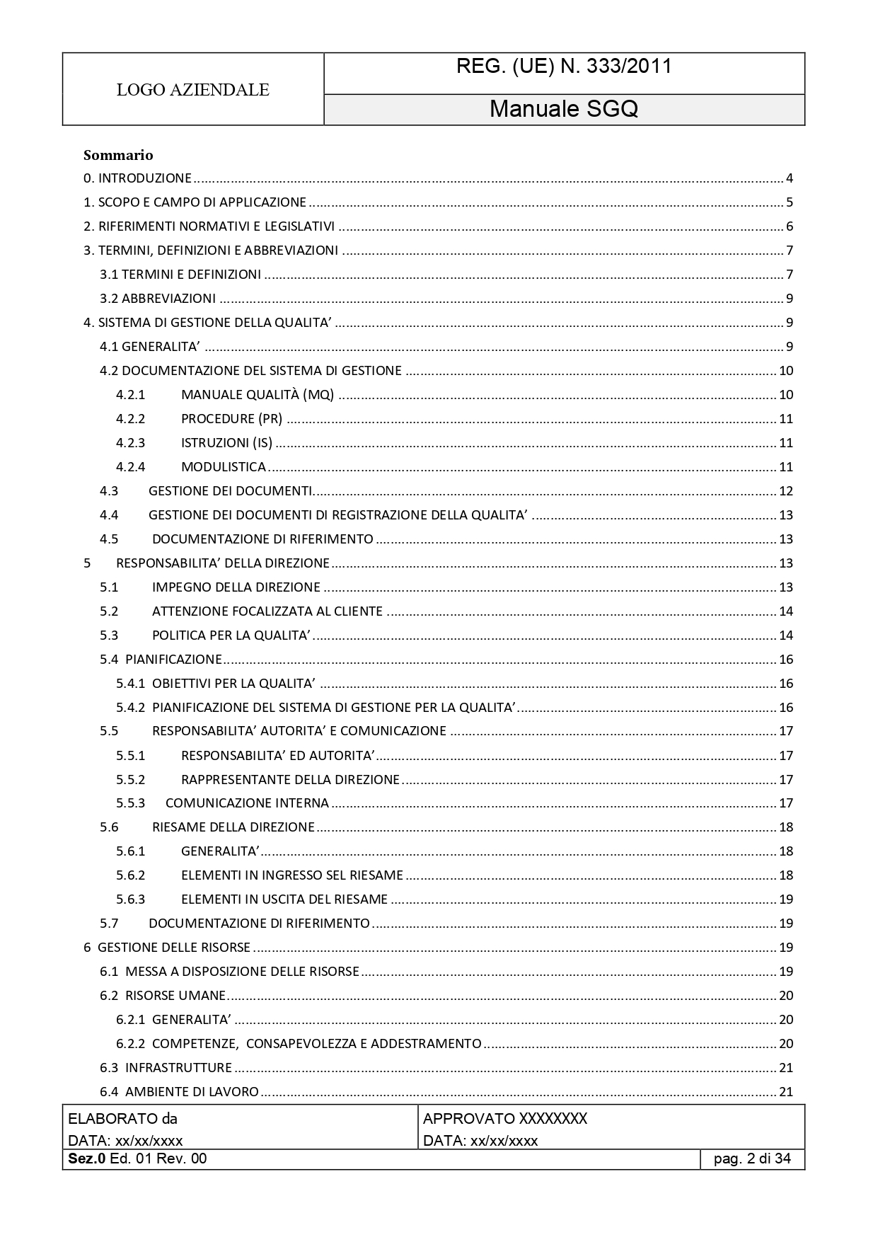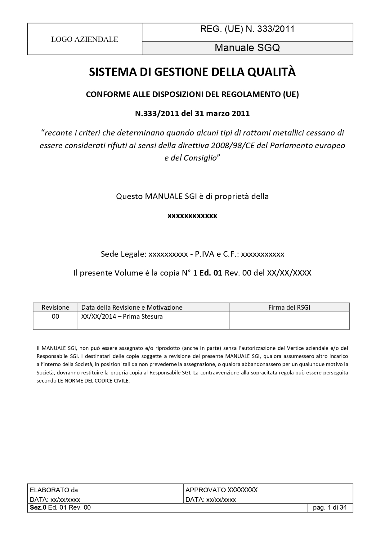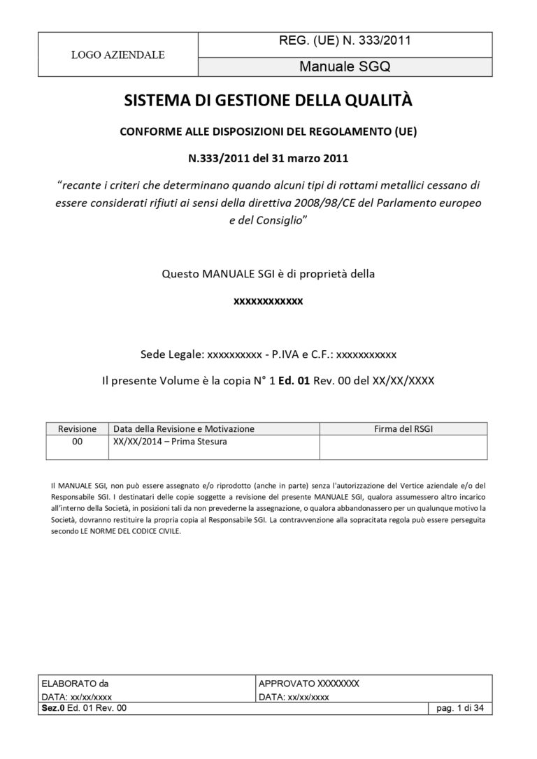 Kit Documentale Sistema di Gestione Reg. (UE) 333/2011