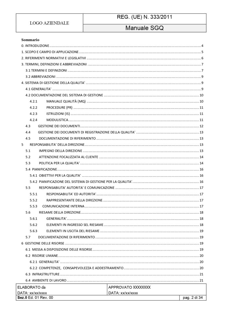 Questo kit ti consente di implementare in modo rapido e strutturato un Sistema di Gestione conforme al Reg. (UE) 333/2011, senza dover creare documenti da zero.