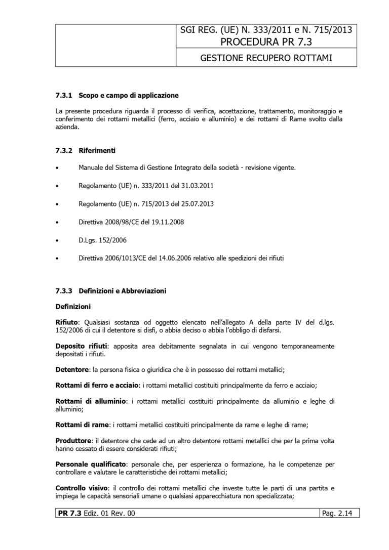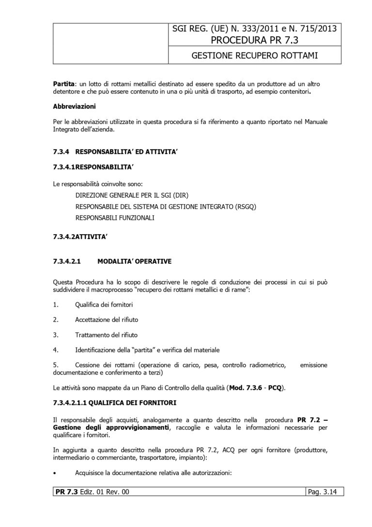 PR 7.3 Gestione del recupero rottami