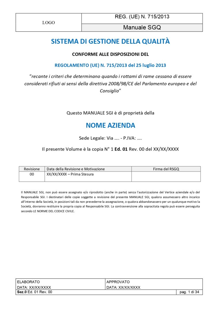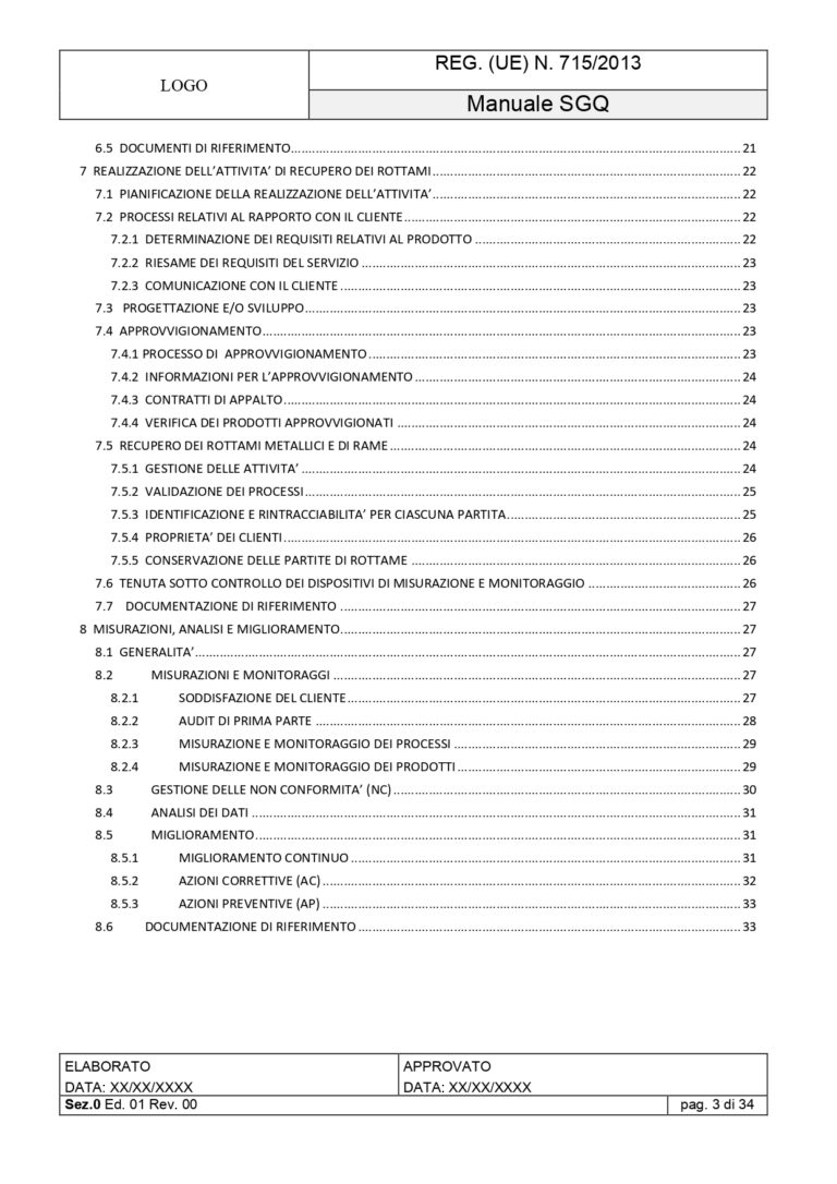 Kit Documentale Sistema di Gestione Integrato Reg. (UE) 333/2011 – Reg. (UE) 715/2013