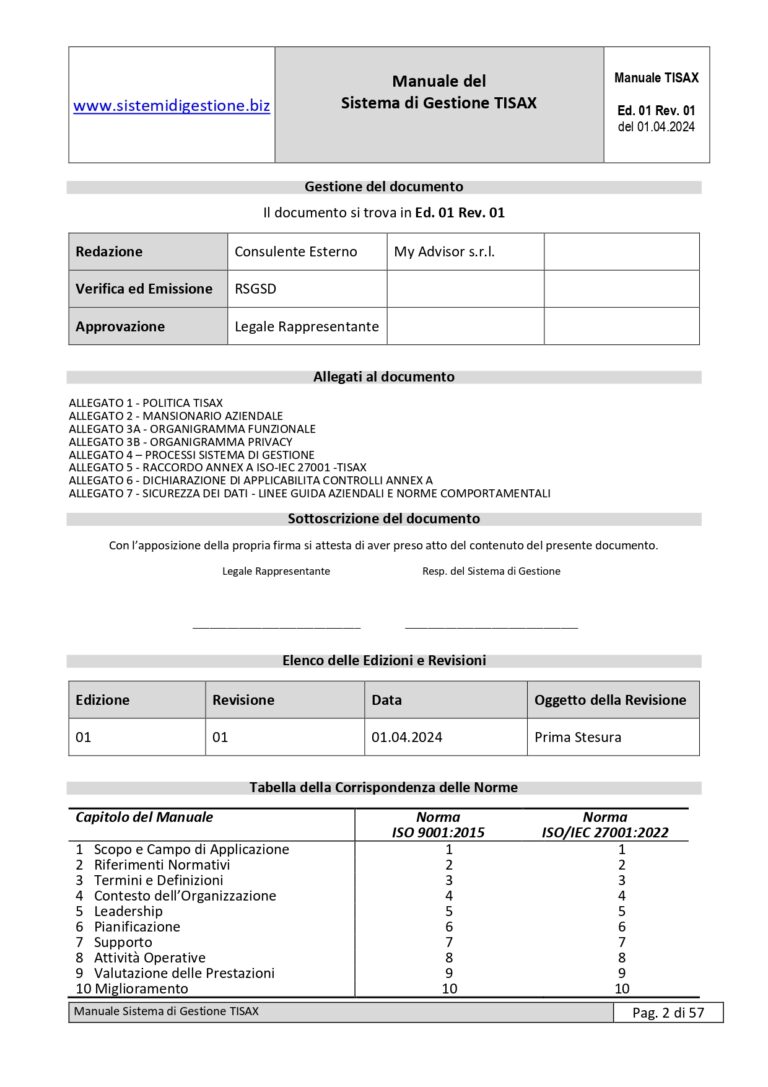 | Procedure TISAX, Policy TISAX e Moduli di Registrazione Evidenze TISAX | |||||
