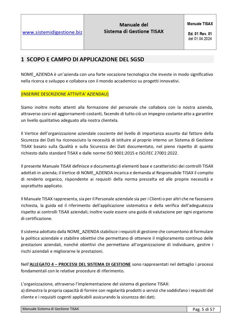 | / | / | / | ALLEGATO | 4 | PROCESSI DEL SISTEMA DI GESTIONE TISAX |