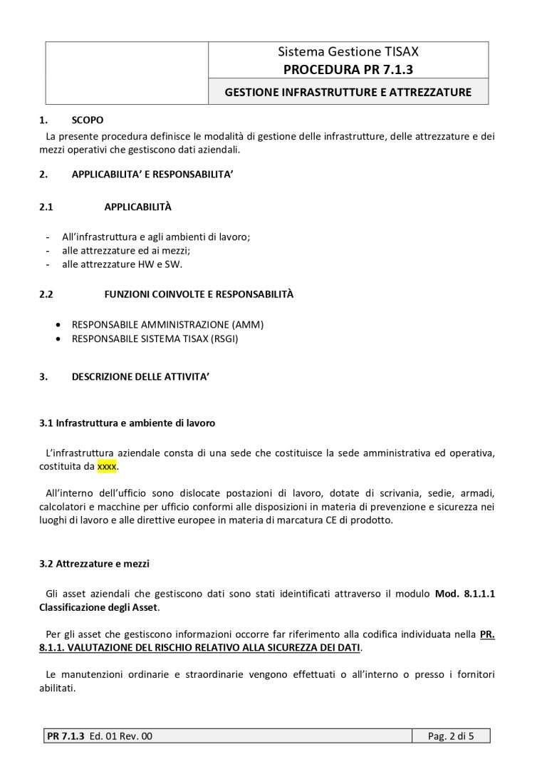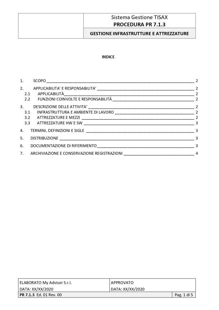 | 3 | PROCEDURA | 7.1.3 | GESTIONE INFRASTRUTTURE E ATTREZZATURE | ||