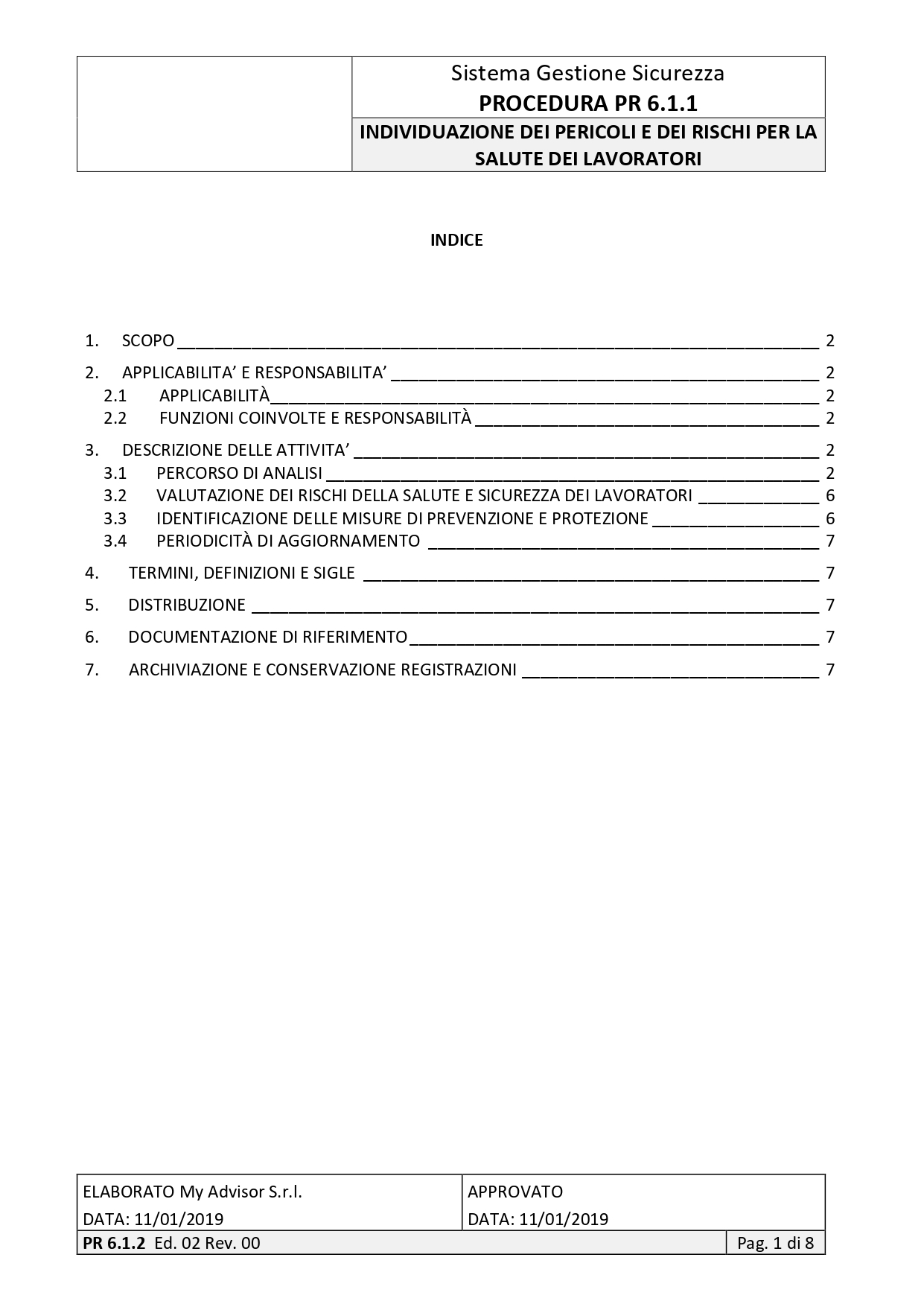 | PROCEDURE | 6.1.1 | HAZARD IDENTIFICATION AND SAFETY RISK ASSESSMENT | ||